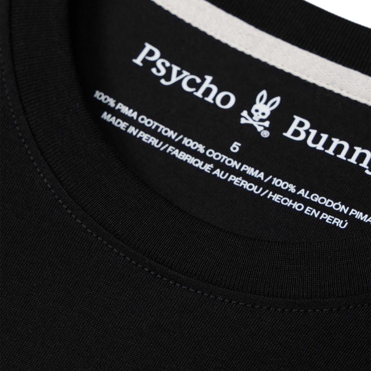 The Vincent Graphic Tee by Psycho Bunny is a premium men's t-shirt that combines comfort with distinctive style. Crafted from 100% Pima cotton, this tee offers exceptional softness and durability. The regular fit ensures a flattering silhouette, while the ribbed crew neckline and short sleeves provide a classic look. A standout feature is the embroidered center bunny logo with a contrast water-based print, adding a bold touch to the design. The contrast back neck taping and taped shoulder seams enhance both comfort and durability. Machine washable for easy care, the Vincent Graphic Tee is available in various colors to suit diverse style preferences.