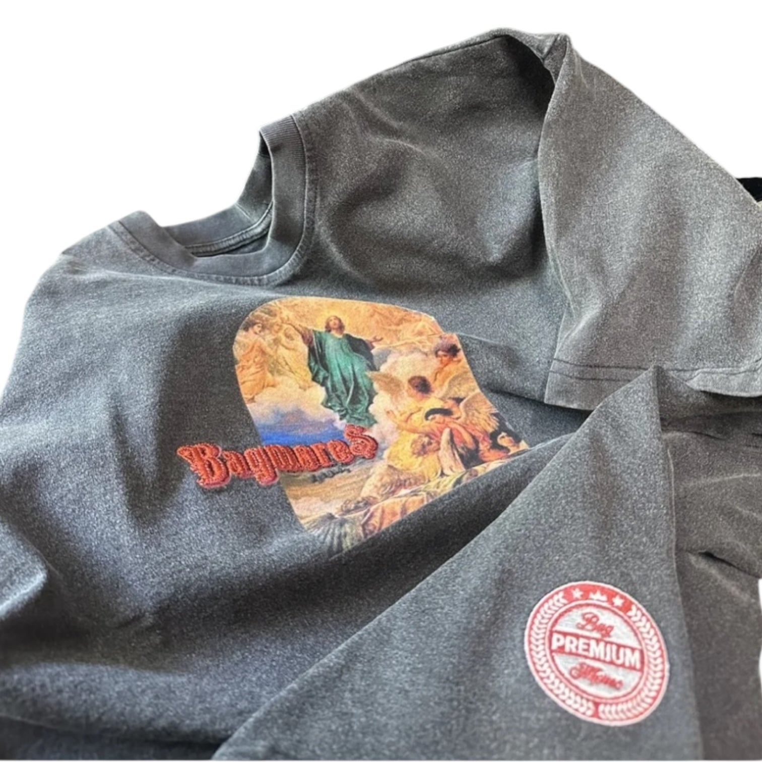The Bagmores Ascension Tee is a heavy-weight, acid-wash t-shirt featuring a unique combination of DTG (direct-to-garment) print and embroidery design. This t-shirt blends modern printing technology with classic embroidery for a distinctive and stylish look. The acid wash gives the fabric a vintage, worn-in appearance, adding to its edgy and trendy aesthetic. Ideal for those who appreciate high-quality craftsmanship and unique fashion statements, the Bagmores Ascension Tee is both durable and fashionable, making it a standout piece in any wardrobe.