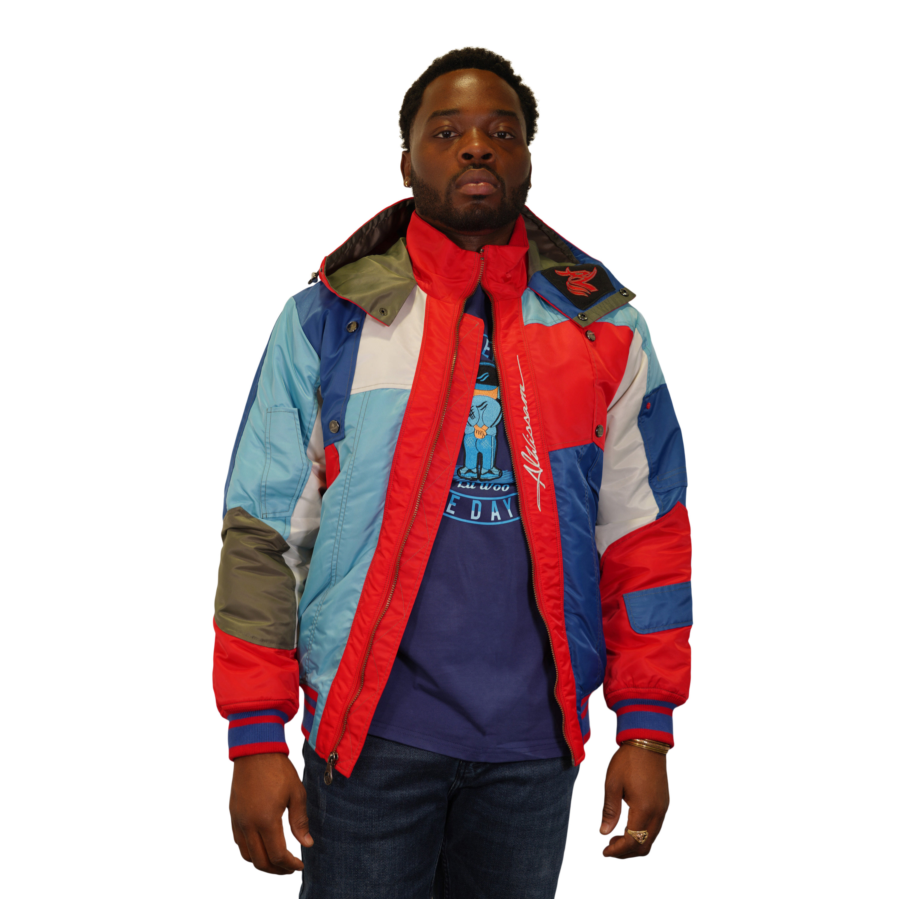 Our signature AL logo discreetly graces the jacket, running horizontally near the zipper, adding a touch of distinction to your style. Two flaps on both sides of the neck offer both practicality and flair, with one featuring our embroidered AL logo, a symbol of authenticity and excellence.