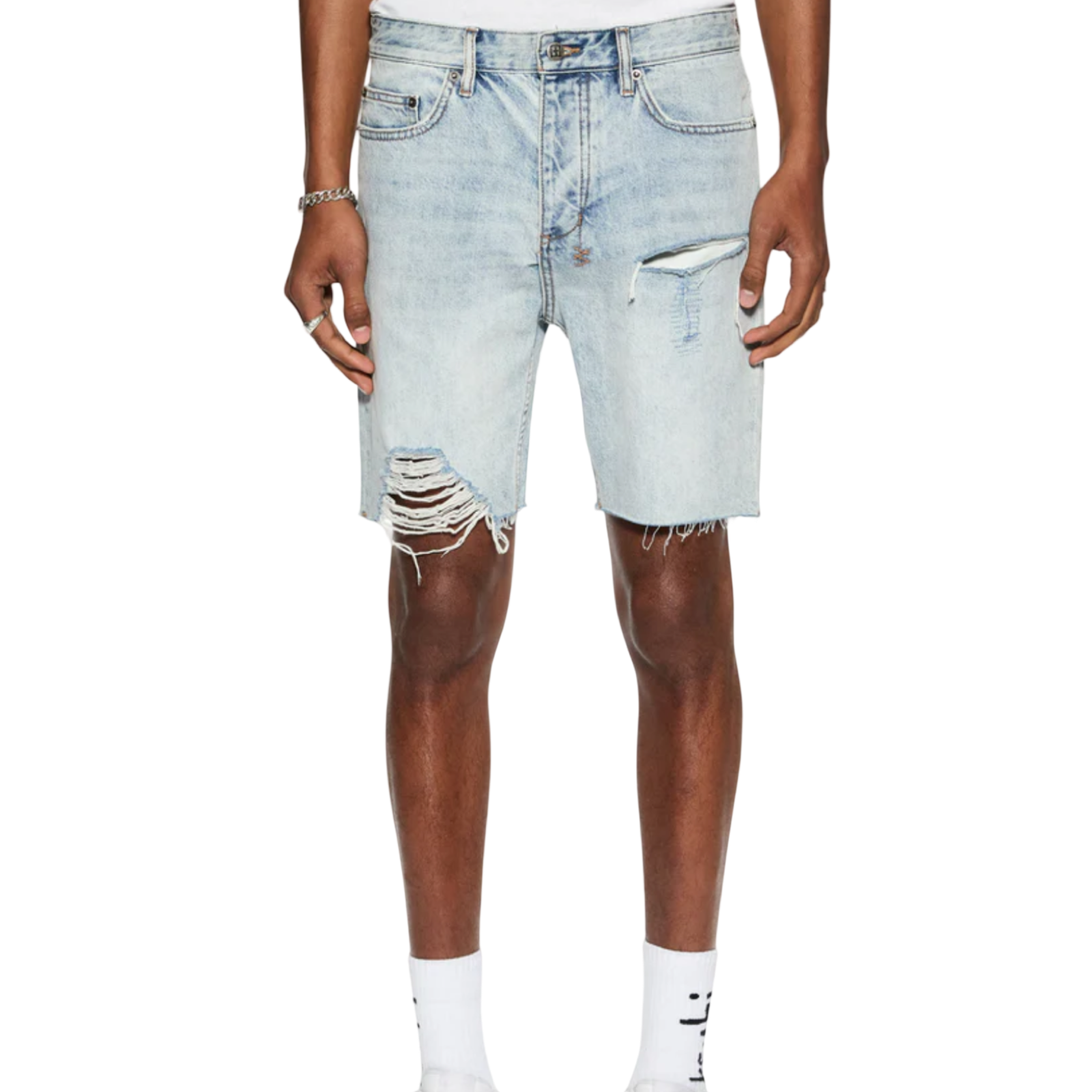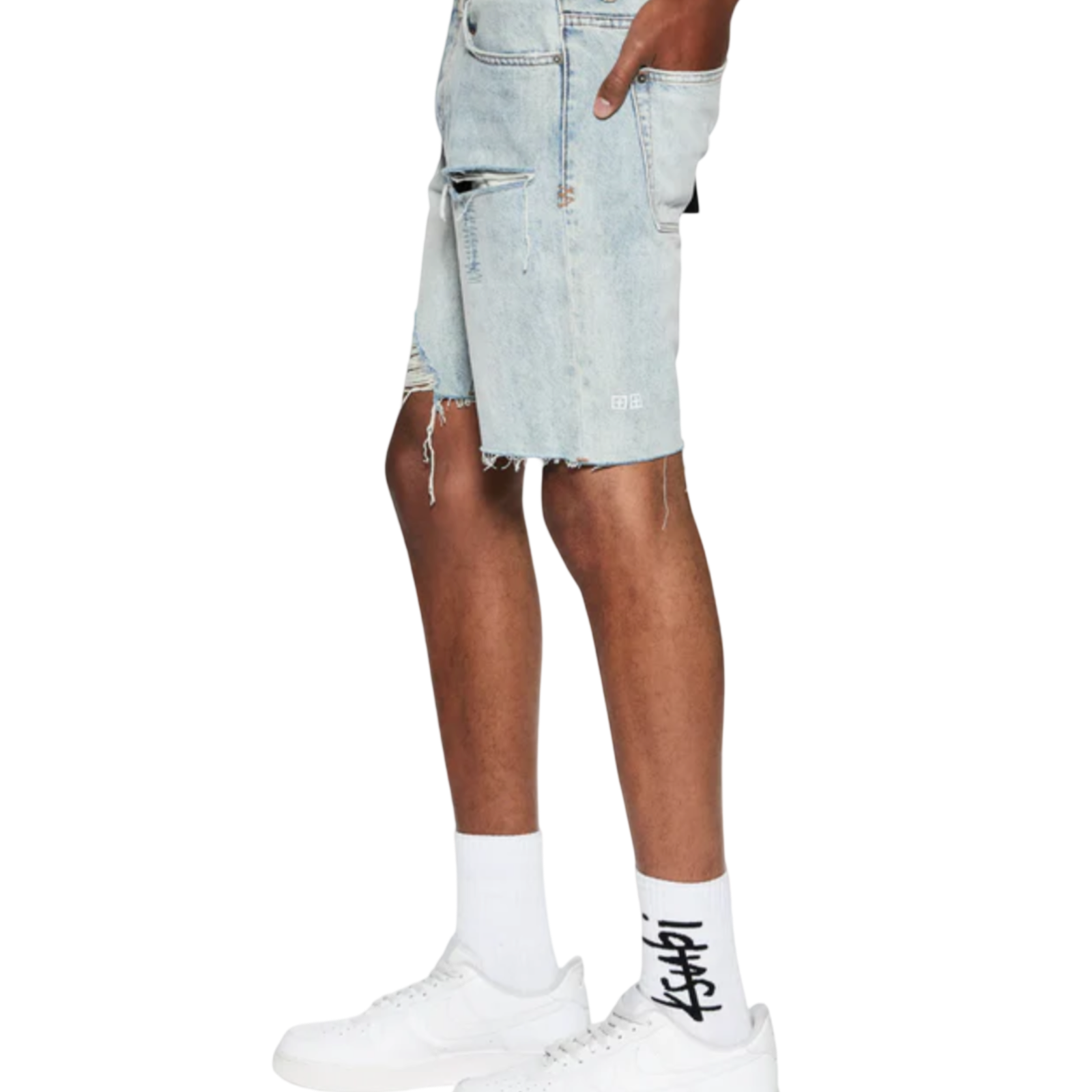 The Chopper Short Karma Trashed is a mid rise, slim fit denim short. Constructed from a premium rigid denim featured in a light vintage stone wash colorway. These short features trashing and heavy distressing and is finished with the signature Ksubi 4x4 detailing and removable back pocket tag.