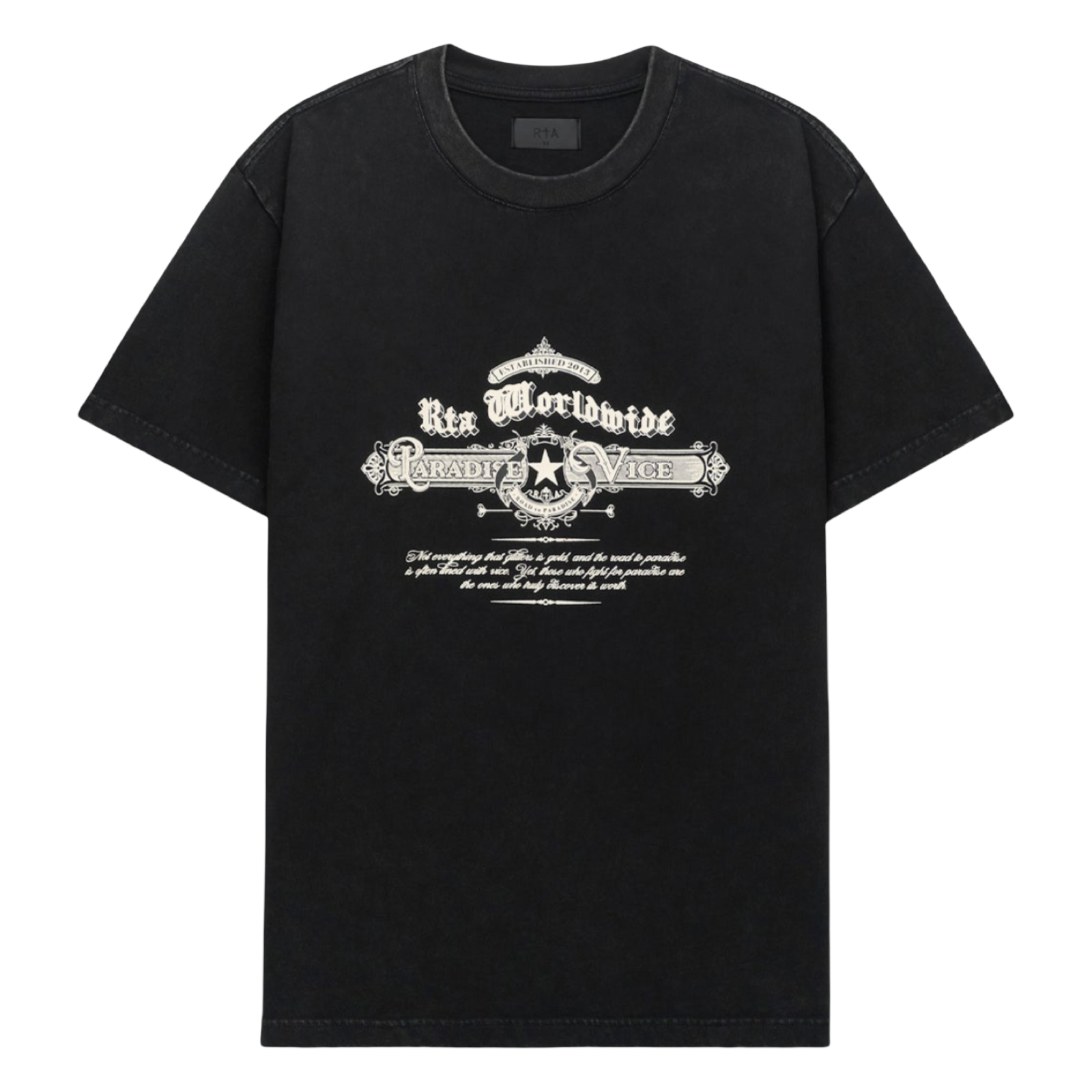The Colin Oversized Short Sleeve Tee in Black Road To Paradise is an oversized, crew neck tee made from 100% Cotton. This tee features a retro-inspired text graphic on the front and the RTA logo on the lower back.