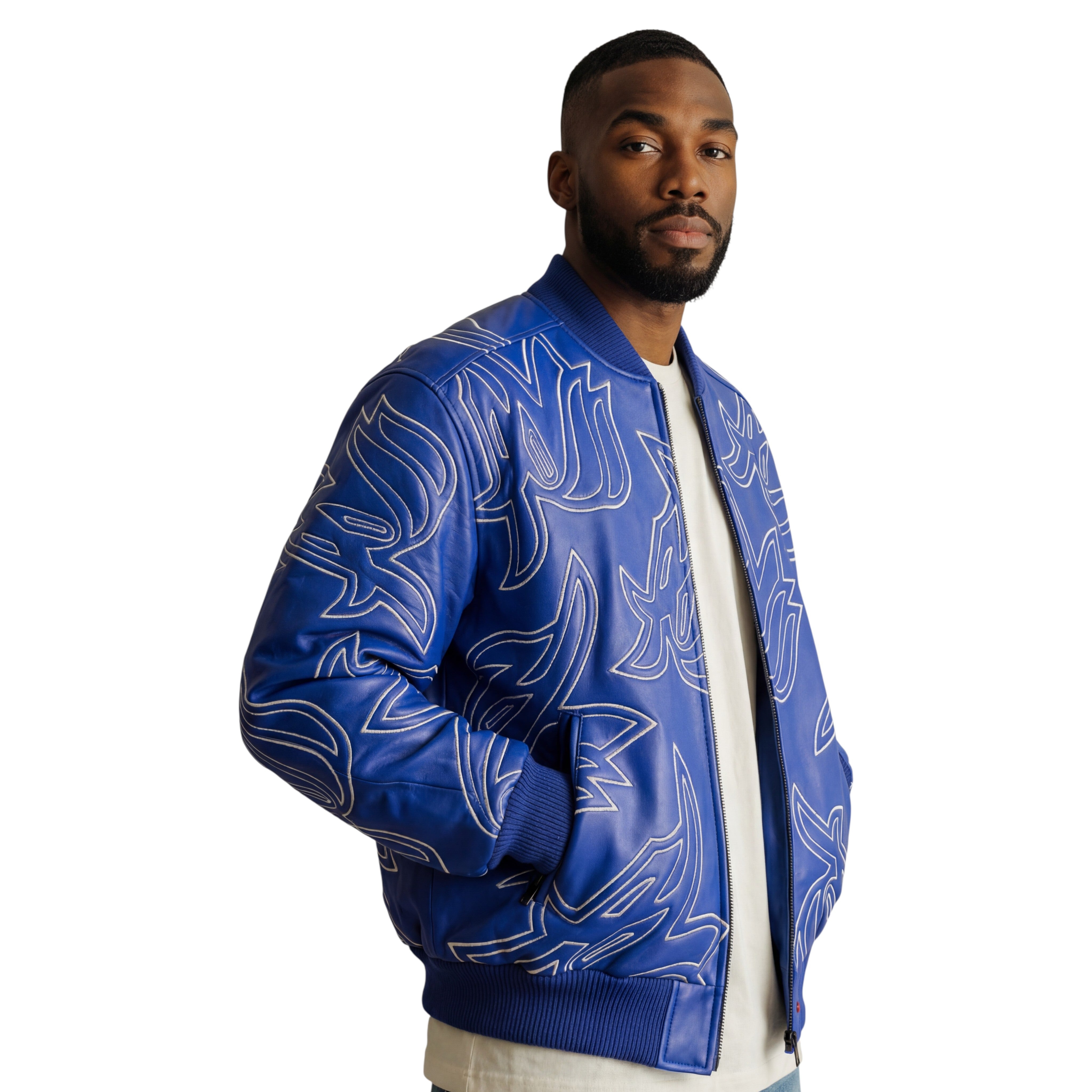 A wholly crafted leather bomber jacket that is fit for a monarch. This limited piece is available in multiple colors and made with a genuine leather body.