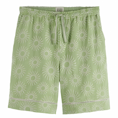 Relaxed-Fit Embroidered Linen-Blend Short Sleeve Shorts