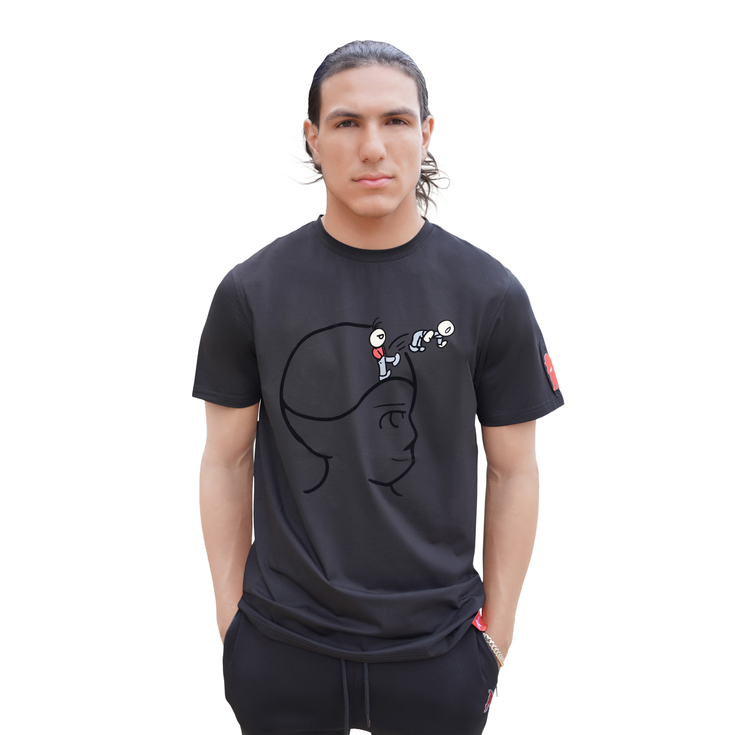 This tee delivers a powerful message through its design. It depicts a character kicking someone out of their head, symbolizing the act of removing negative influences and toxic thoughts. It's a visual reminder of the importance of maintaining a positive and healthy mindset.