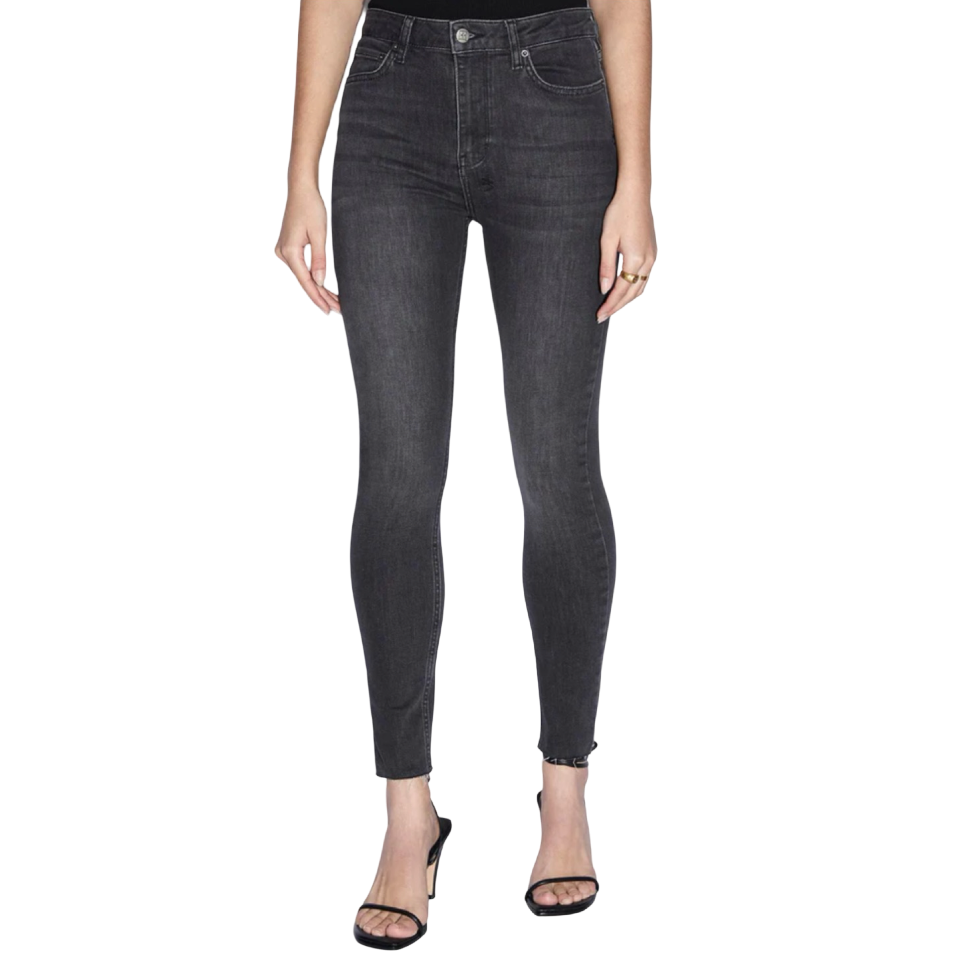 The Hi N Wasted Diablo is a high rise, super skinny fit jean sitting at ankle grazing length with classic five pocket styling. Made from premium European power stretch cotton denim in a dusted black colourway with a stone wash. This style features raw cut hems, light distressing, branded hardware, signature crosses and removable pocket tag.