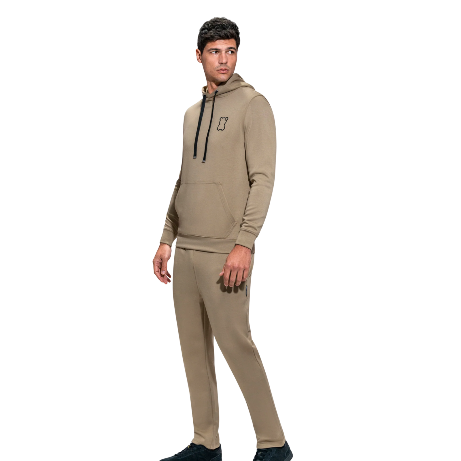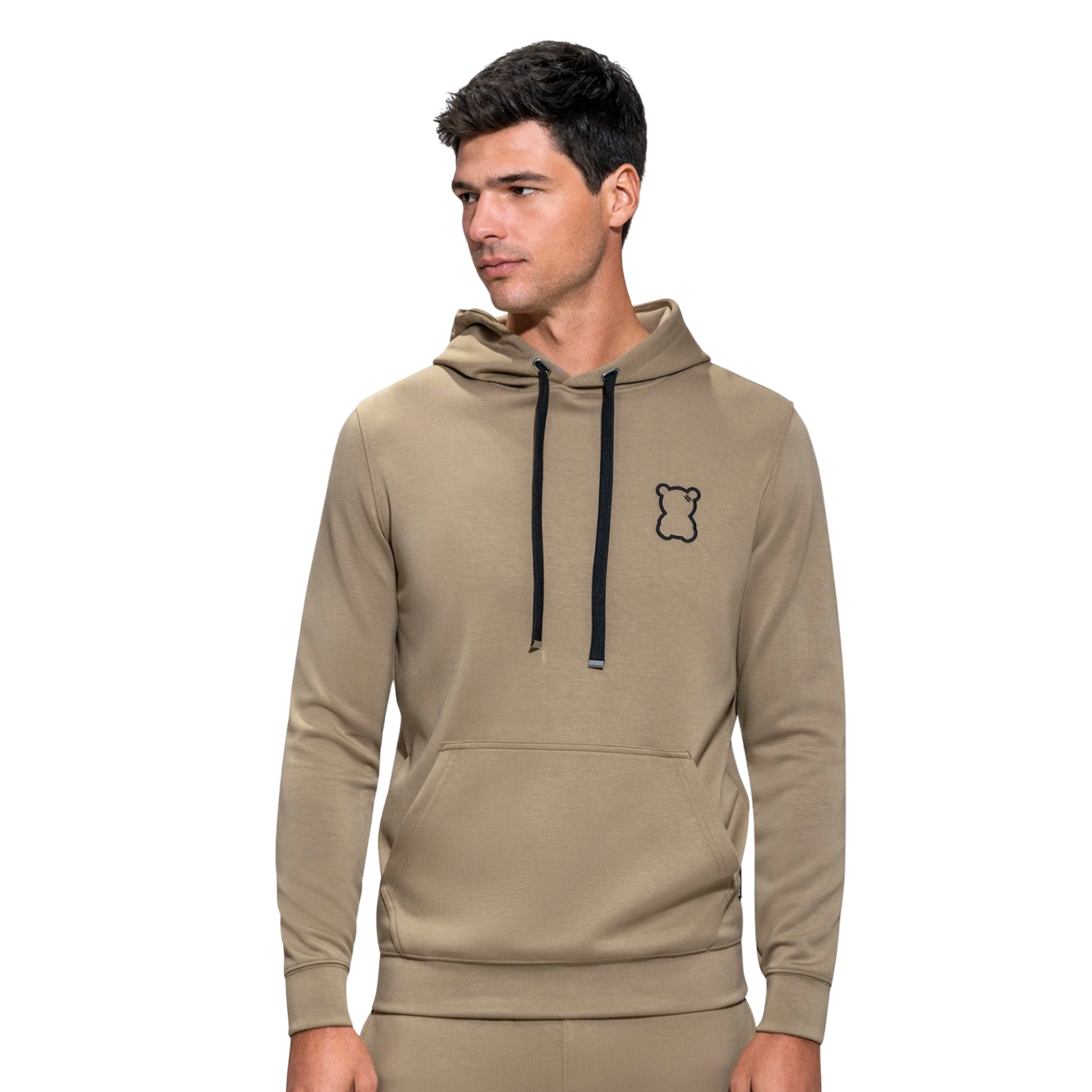 This versatile hoodie is designed for effortless everyday wear, offering comfort and functionality in a clean, modern silhouette. Featuring an adjustable hood with drawstrings for a personalized fit, it is crafted from a premium rayon, polyester, spandex blend that provides softness, breathability, and 4-way stretch for ease of movement. The ribbed cuffs and waistband deliver a secure, flattering fit, while the side pockets add practical storage for daily essentials. Finished with an embroidered bear logo for a refined signature touch, this hoodie is ideal for cooler spring and summer days and nights, making it a timeless wardrobe essential.