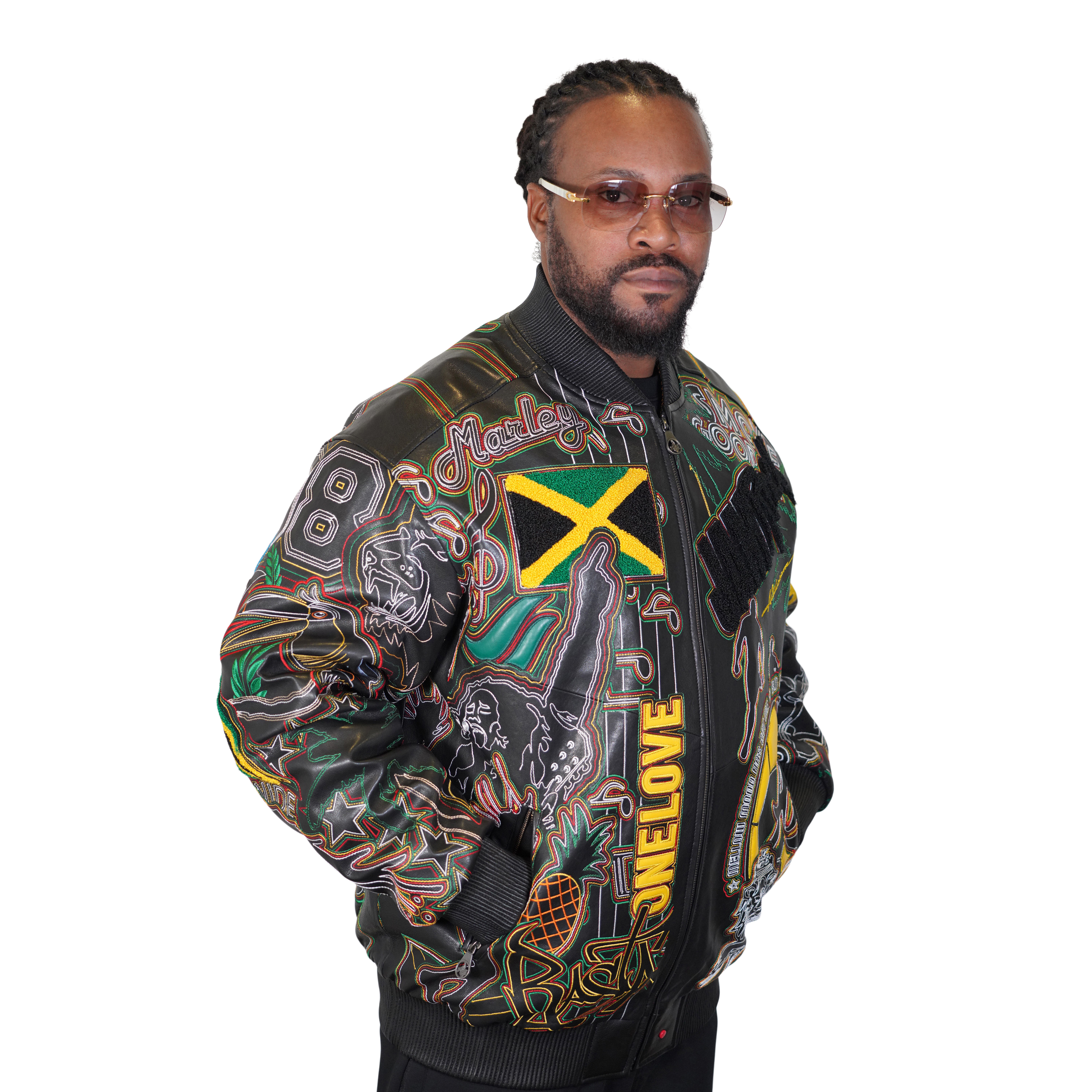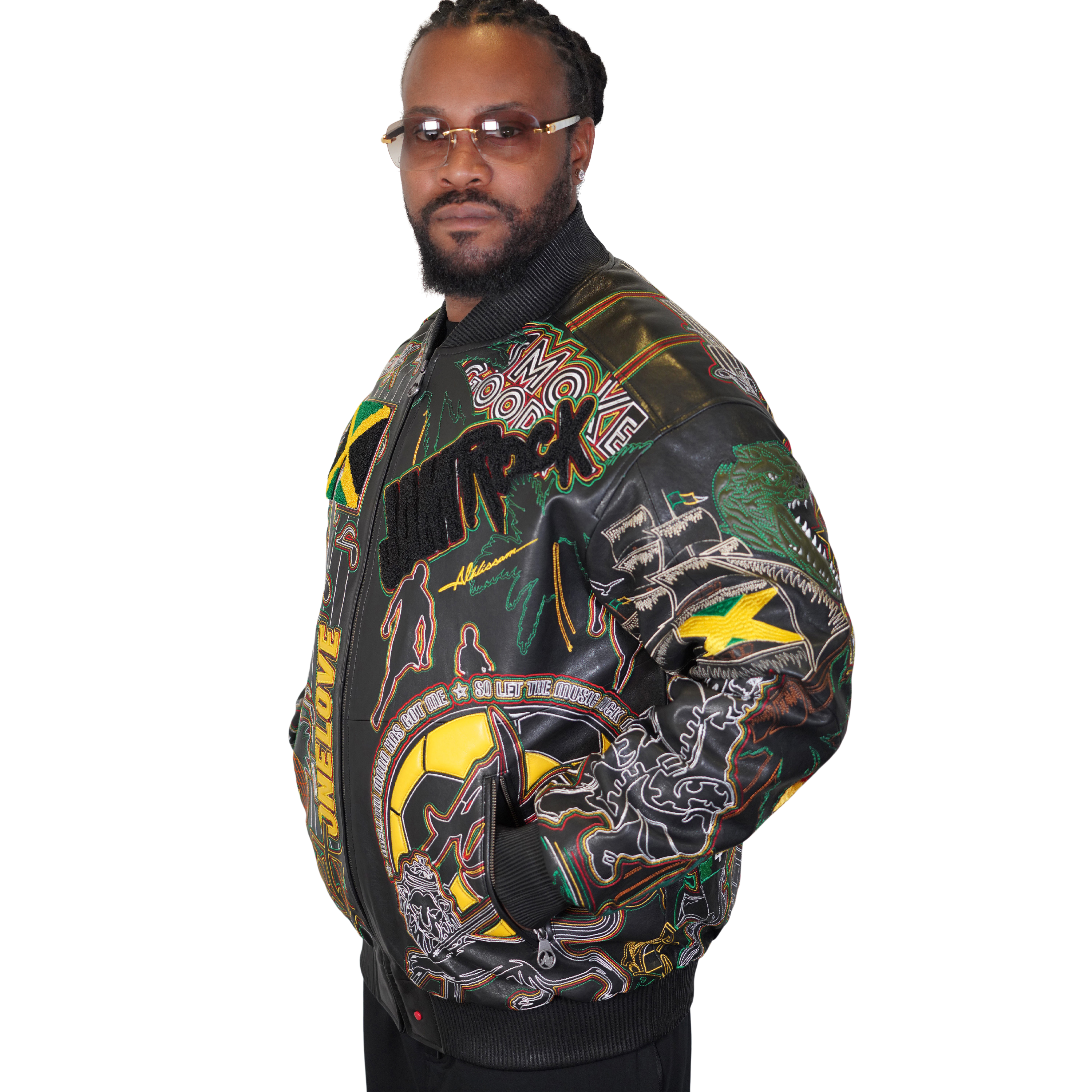 Adorned with meticulously embroidered Jamaican Icons, art, and cultural symbols, this jacket is more than just outerwear; it's a wearable celebration of Jamaica's rich heritage. Whether you're showcasing your love for reggae, Jamaica's stunning landscapes, or its legendary artistry, this jacket tells a story of the island's captivating culture.