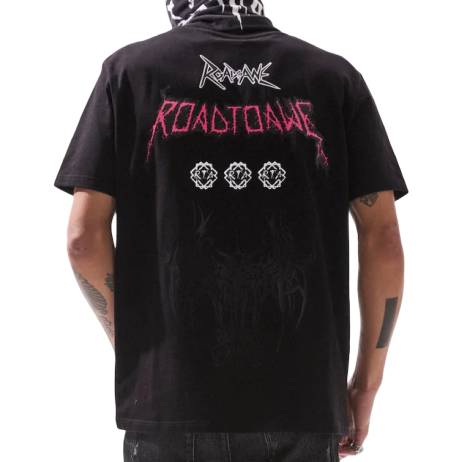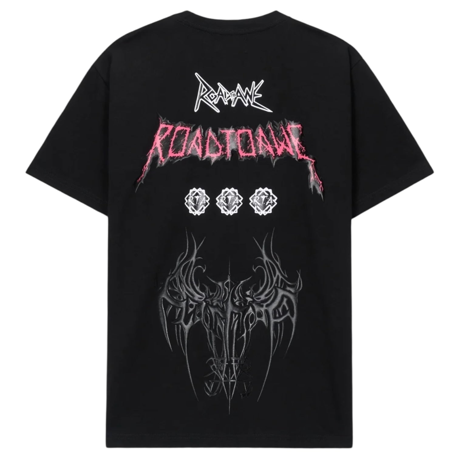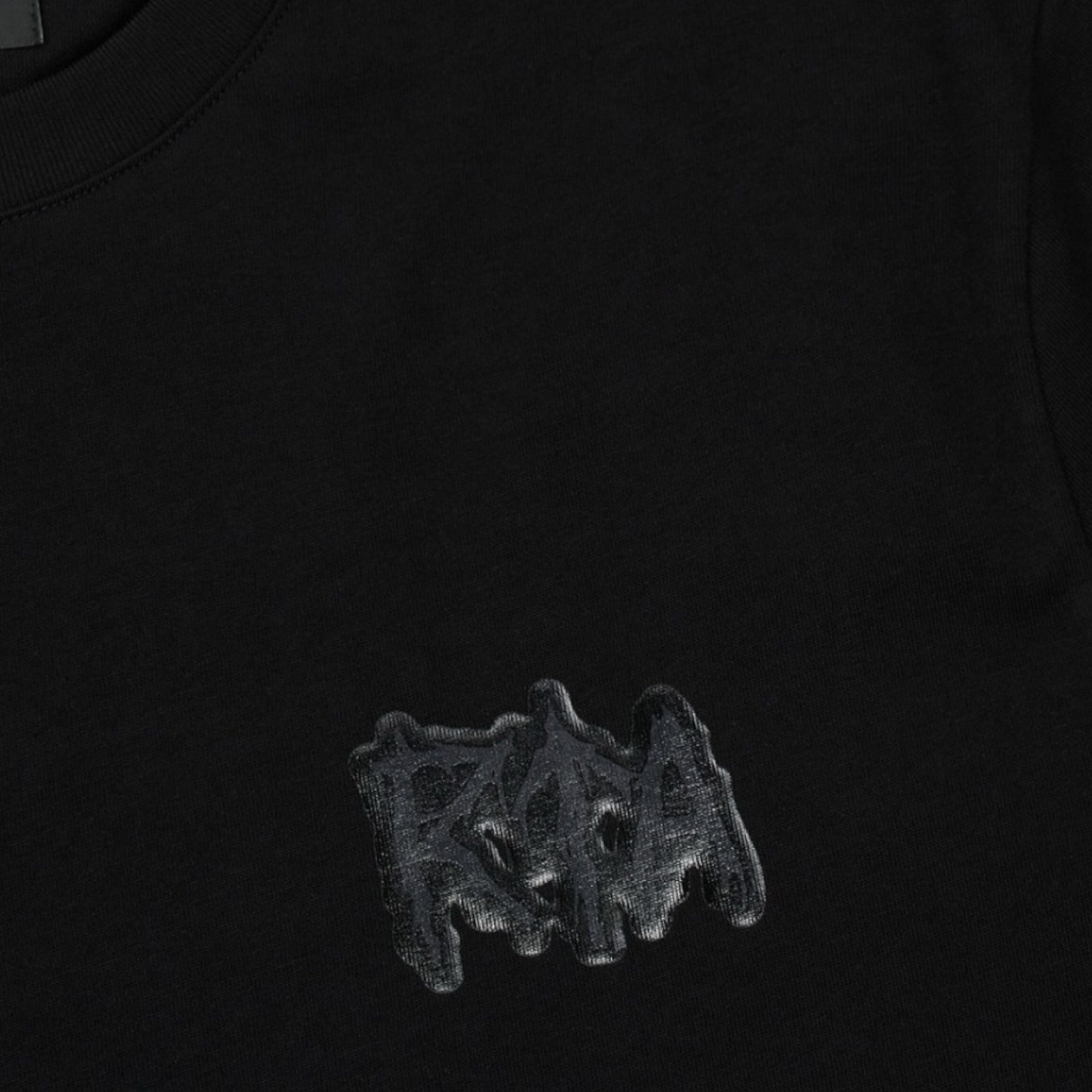 The Liam Short Sleeve Tee in Black Cyber Metal is a regular fit, crew neck tee made from 100% Cotton featuring a small metal inspired RTA logo on the chest and original RTA logos and artwork down the back.