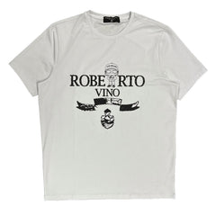 The Roberto Boy T-Shirt brings a bold graphic aesthetic with a signature Roberto Vino character design on the front and back. Featuring a distressed-style "Roberto Vino" logo with intricate detailing, this tee delivers a standout streetwear vibe.