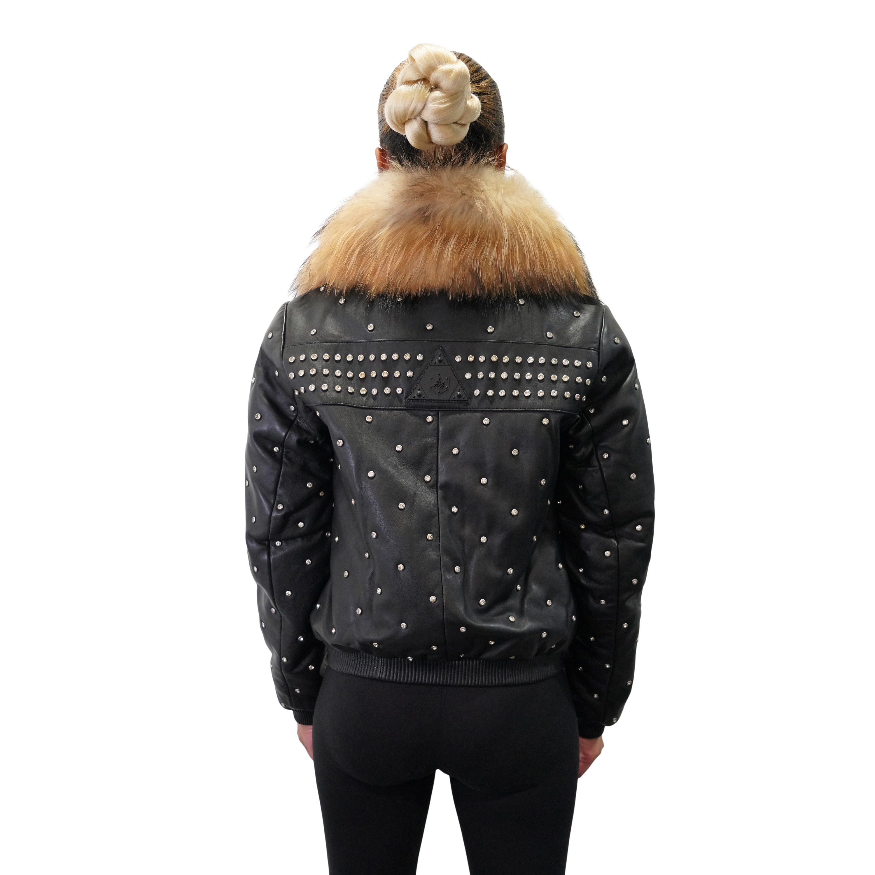 With its tailored fit and timeless design, the "Studded Fur-Collar Women's Leather Jacket" is the ultimate choice for those who appreciate both refinement and coziness. Embrace the fusion of luxury and warmth with this exceptional piece.