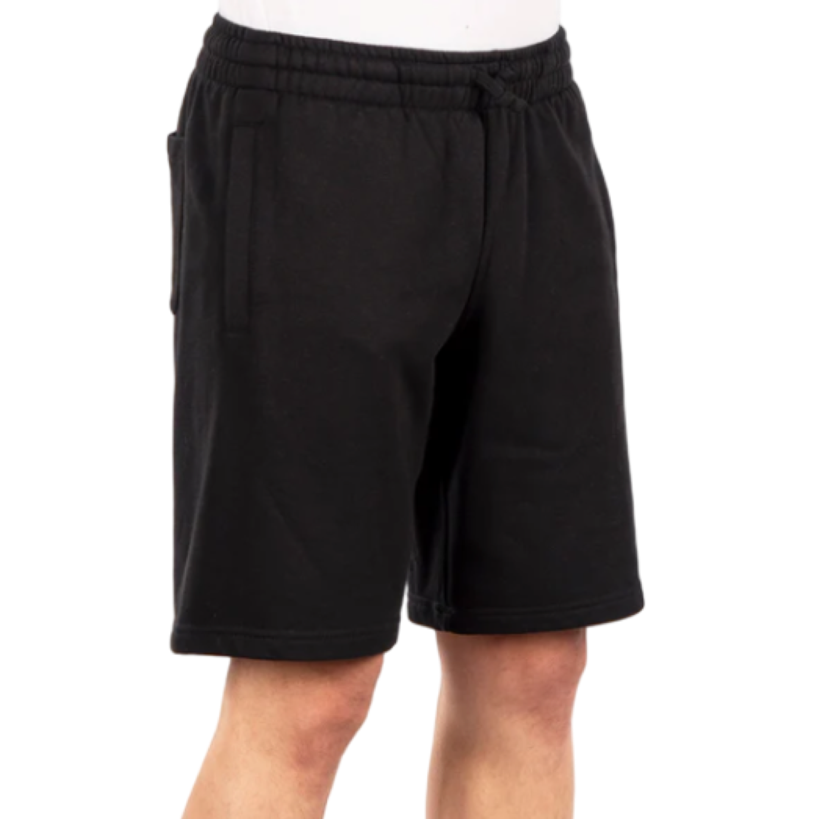 Athletic fleece shorts made from smooth and durable terry fleece fabric. Strong waist band support, side slant pockets, rear pouch pocket and hemmed bottom. Length falls right above the knees.