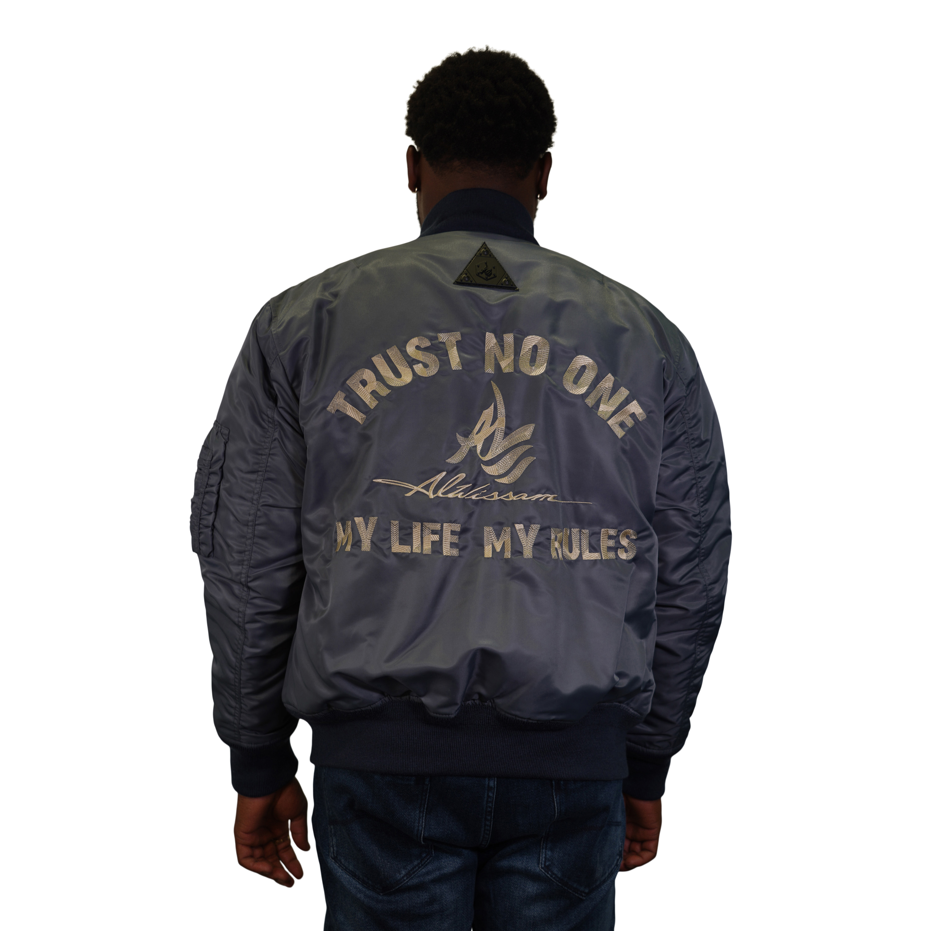 The jacket proudly showcases the compelling "Trust No One" design boldly printed on the back, serving as a reminder to stay true to yourself and trust your instincts. Embrace empowerment with the AL Logo design accompanying it, a symbol of authenticity and excellence.