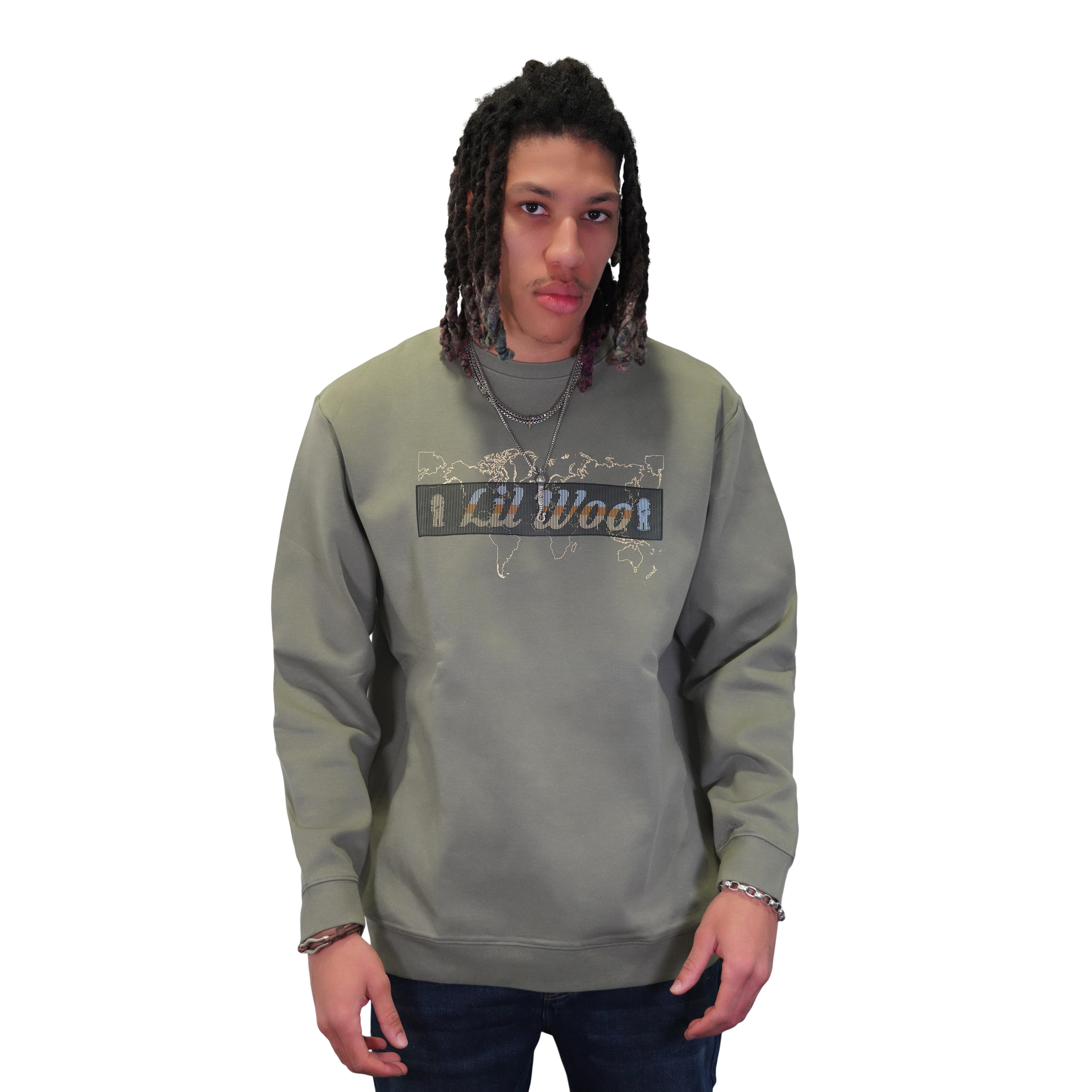 With the distinctive World Map Design adorning the front, this sweatshirt captures the essence of global exploration and wanderlust. The rubber silhouette logo discreetly placed near the cuffs on the sleeve adds a unique touch to your ensemble. As you turn around, the signature drip logo on the back reaffirms your commitment to style that's both cultured and refined.